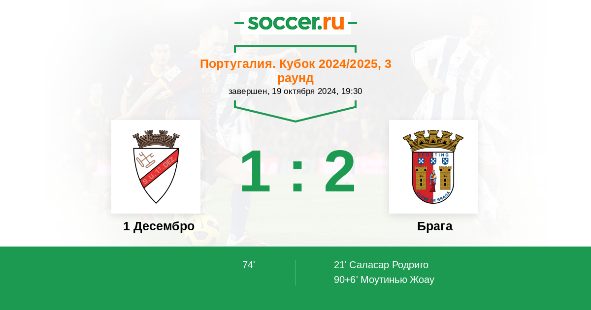 90+6' (1:2) Моутинью Жоау (8)