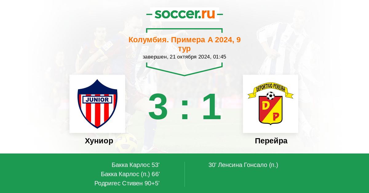 66' (2:1) Бакка Карлос (70)