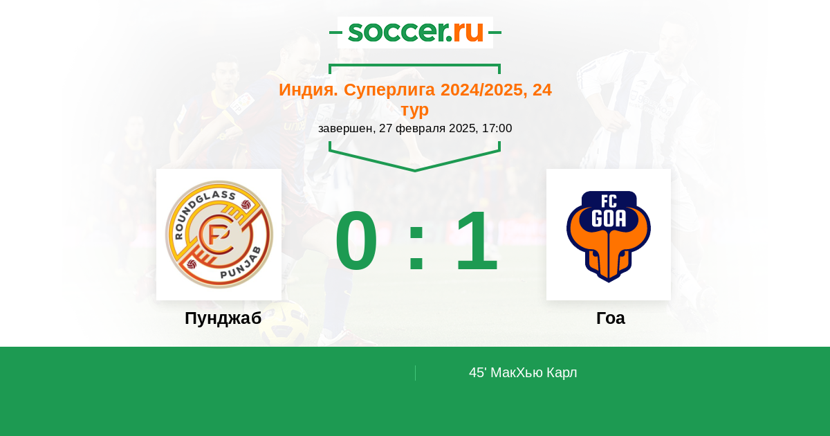 45' (0:1) МакХью Карл (4) (Сингх Кумам Уданта (21))
