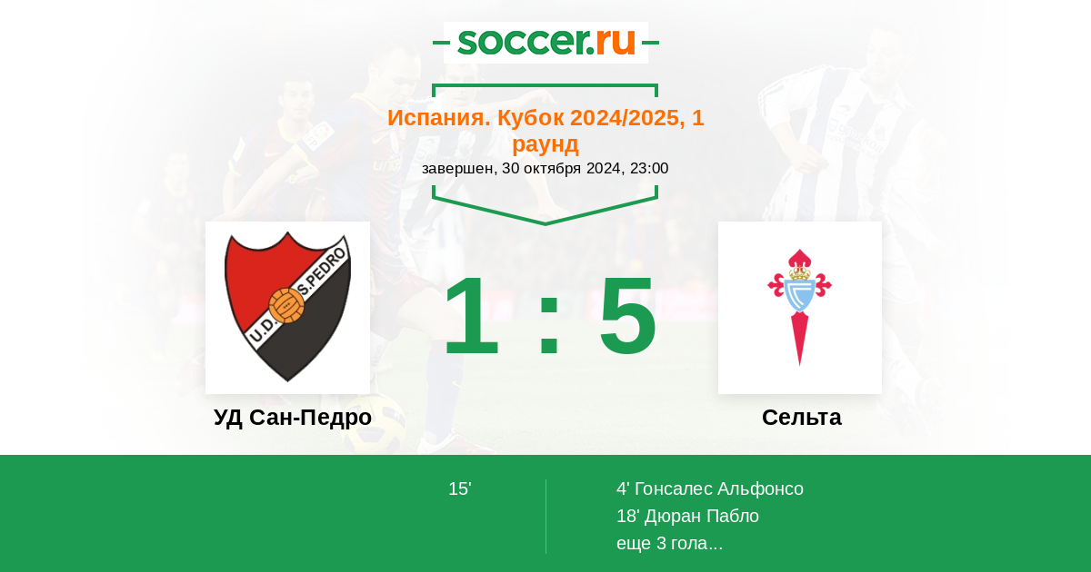 4' (0:1) Гонсалес Альфонсо (12) (Родригес Дамиан (25))