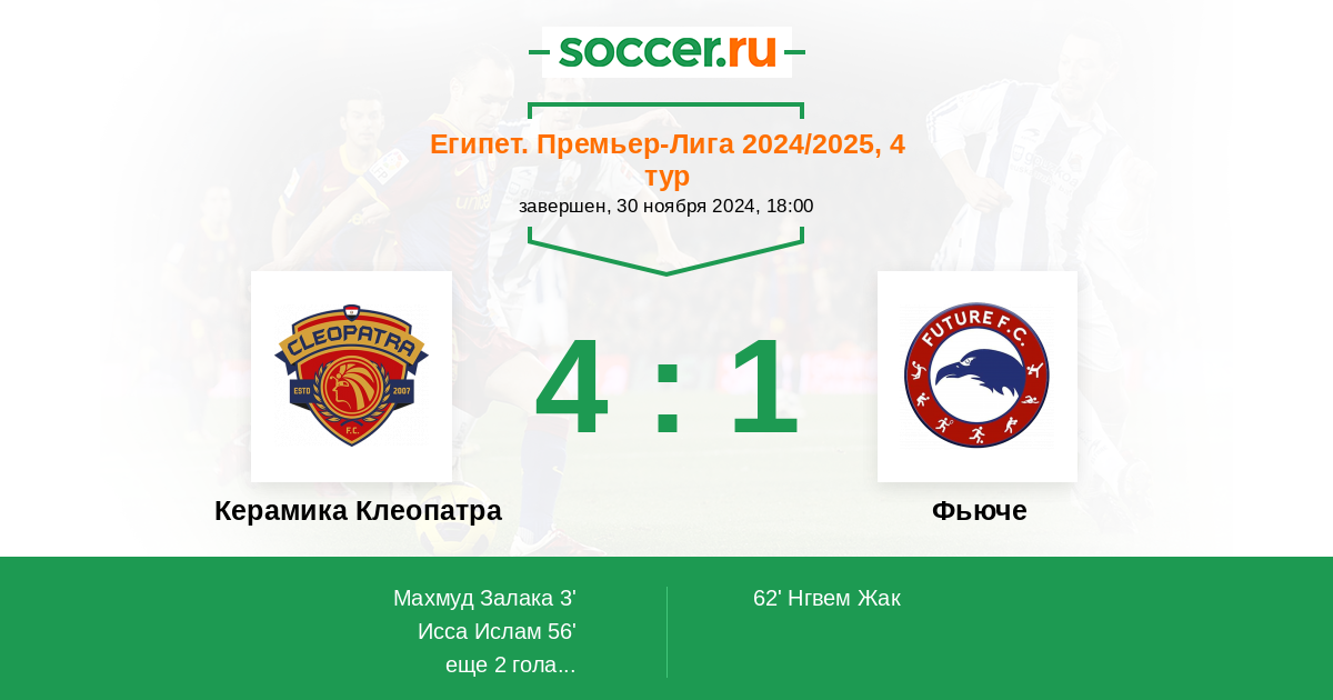 56' (2:0) Исса Ислам (19) (Махмуд Залака (7))
