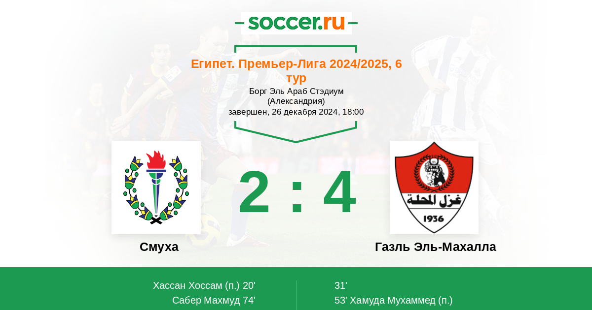Запасные: 19 Эль Бадри Мостафа (с 60'), 2 Хафез Хешам (с 61'), 28 Саид Мохамед (с 61'), 27 Аджайи Олувафеми (с 73'), 4 Хаггаг Баракат (с 89'), 16 Ашраф Мохамед, 15 Габер Ислам, 12 Хамада Адхам, 20 Магди Ашраф