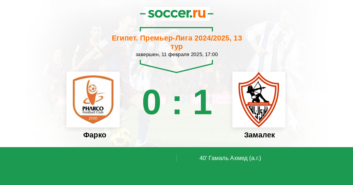 40' (0:1) Автогол Гамаль Ахмед (20)