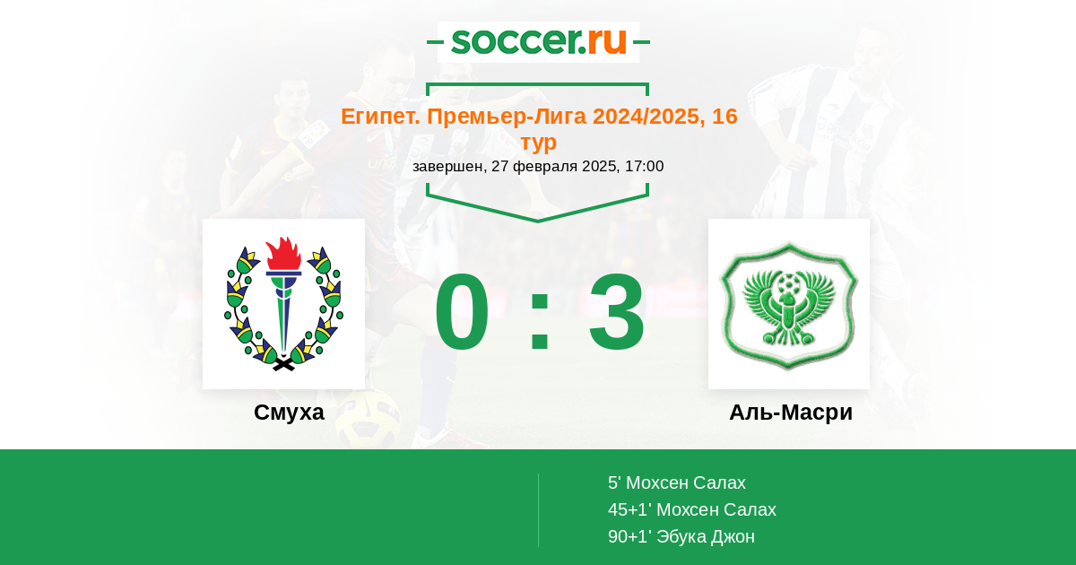 45+1' (0:2) Мохсен Салах (9) (Дегмум Абдеррахим (30))