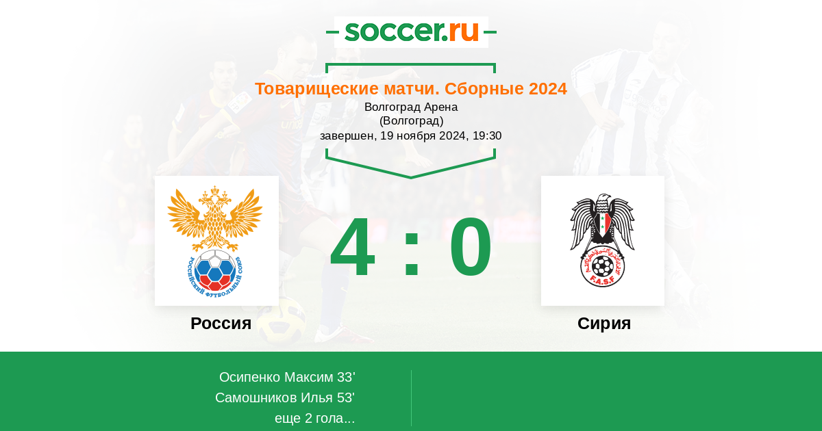 Запасные: 7 Аль Асвад Махмуд (с 65'), 14 Осман Мохаммед (с 65'), 8 Найеф Махмуд (с 77'), 5 Аль-Мидани Омар (с 87'), 19 Ханан Закария (с 87'), 20 Аль-Халлак Мохамад (с 89'), 4 Аль Рина Али, 1 Алма Ибрагим, 24 Дахан Хасан, 6 Кердагли Халед, 9 Аль-Дали Алаа, 23 Сарраф Максим