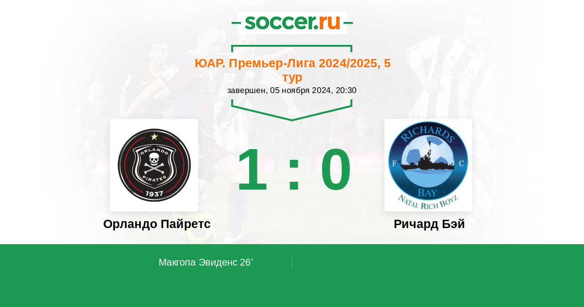 26' (1:0) Макгопа Эвиденс (17)