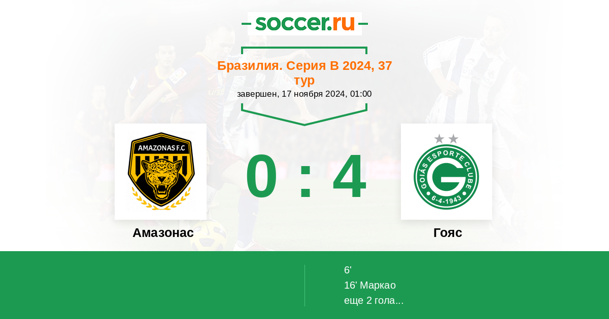 16' (0:2) Маркао (77) (Пауло Байа (7))