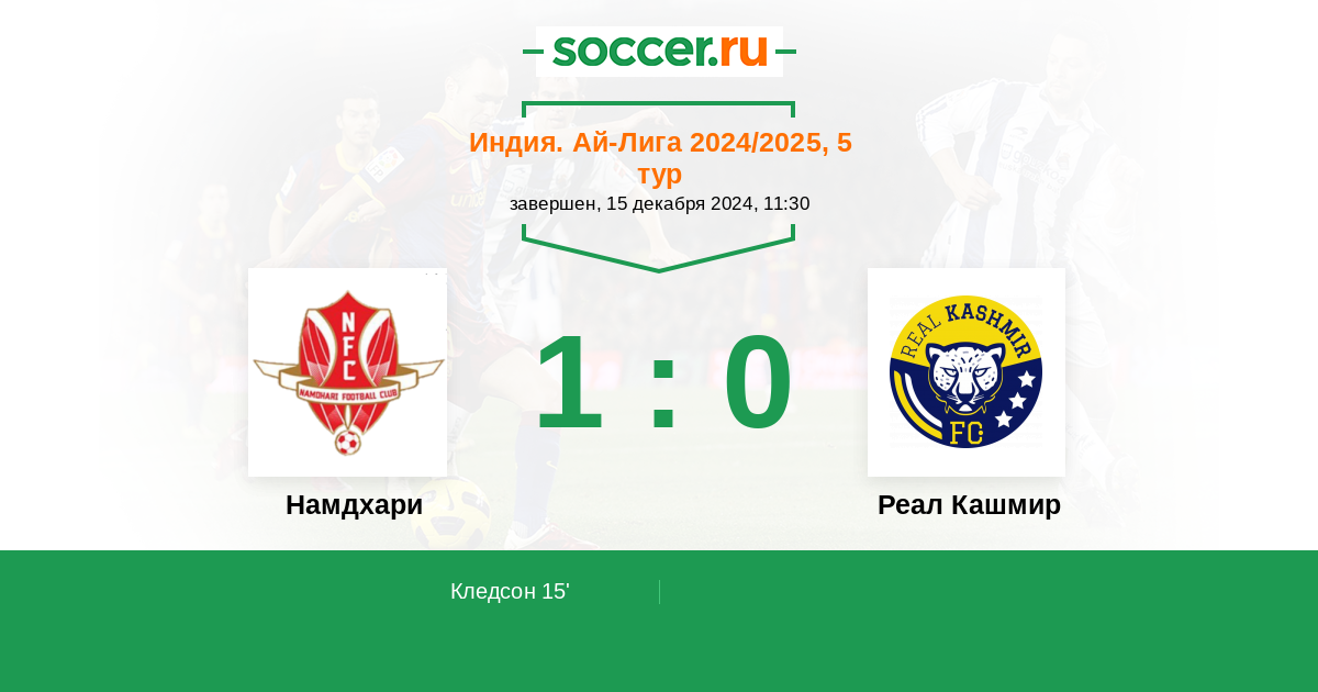 15' (1:0) Кледсон (9) (C. R. Baretto)