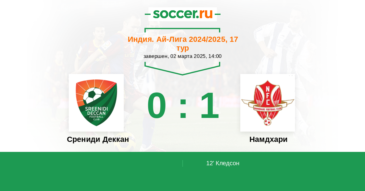12' (0:1) Кледсон (9) (V. de Paula Mercedes)