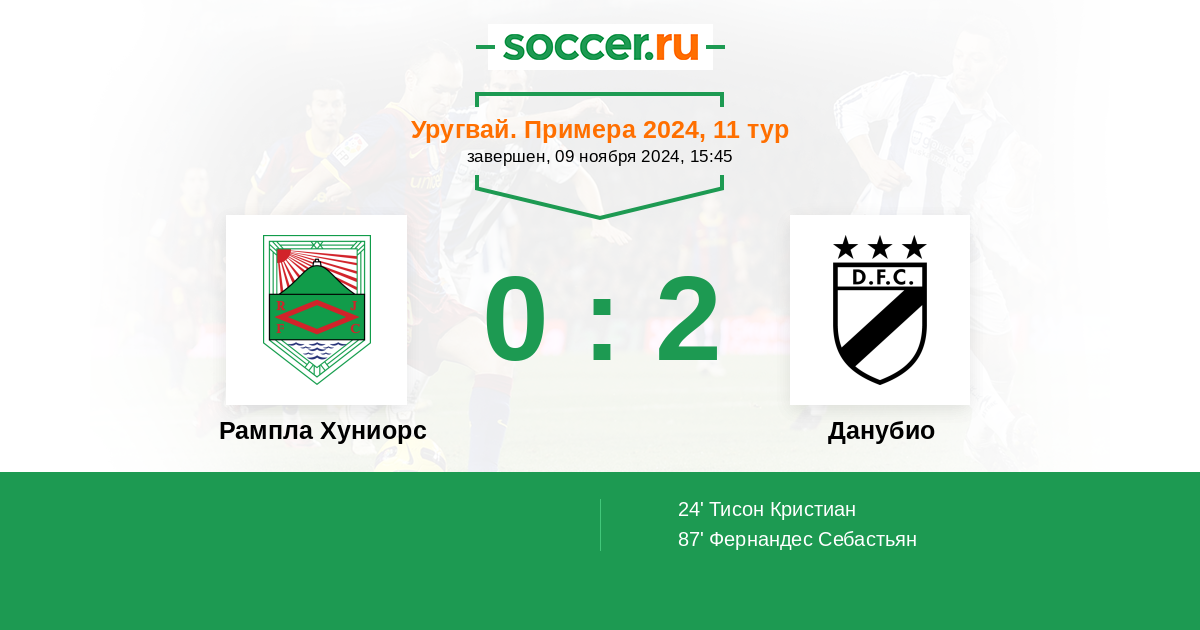 24' (0:1) Тисон Кристиан (8)