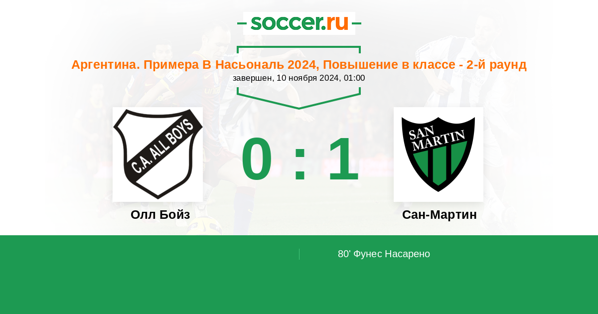 80' (0:1) Фунес Насарено