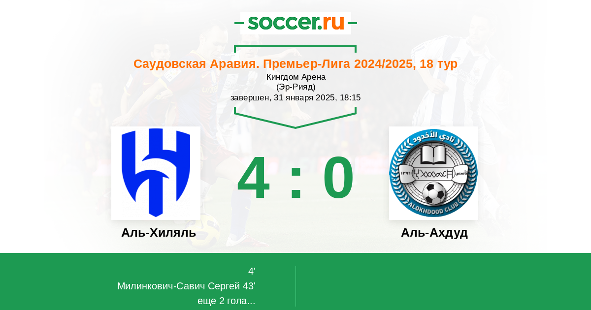 45+2' (3:0) Маркос Леонардо (11) (Аль-Тамбакти Хассан Мохаммед (87))