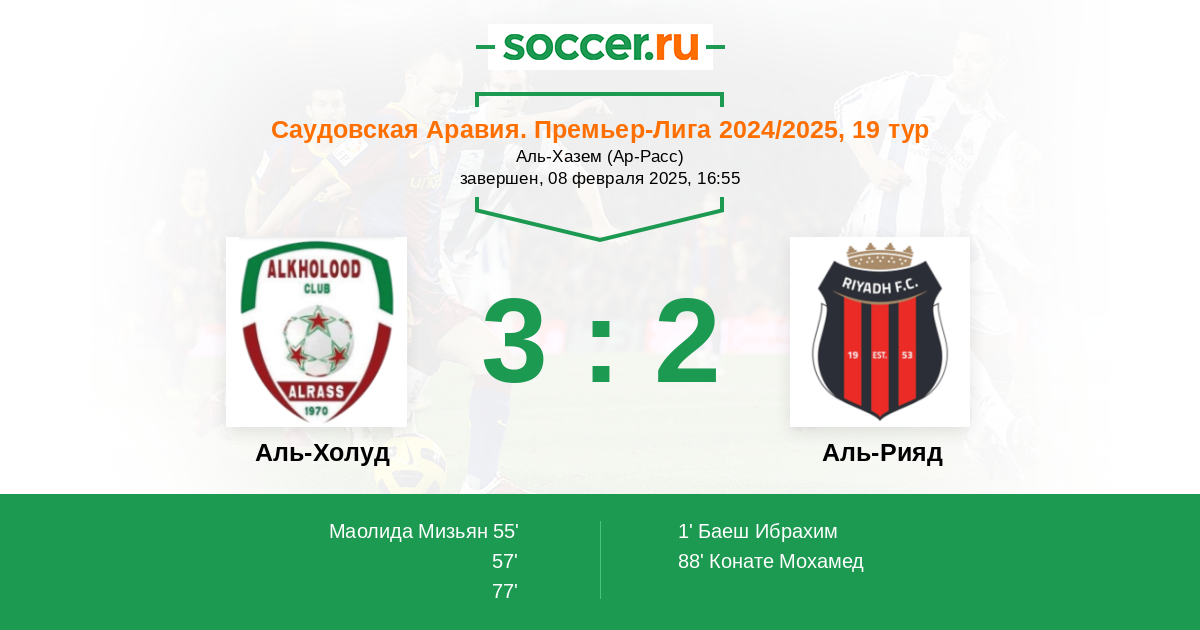 55' (1:1) Маолида Мизьян (9) (Мухаммад Саван (11))