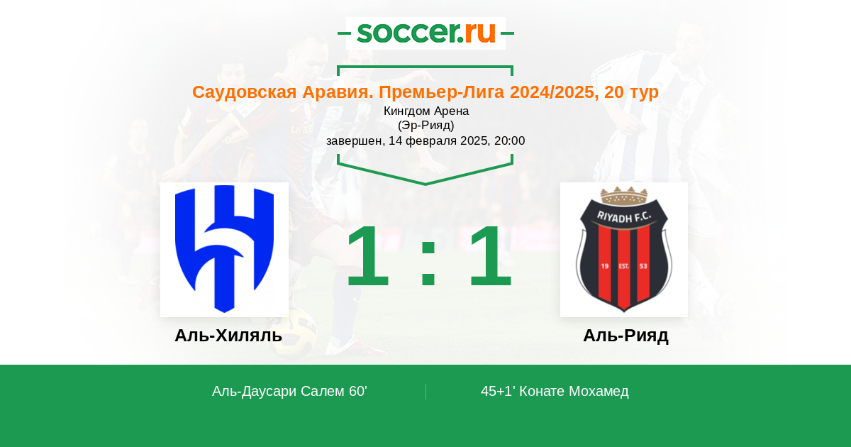 60' (1:1) Аль-Даусари Салем (29) (Маркос Леонардо (11))