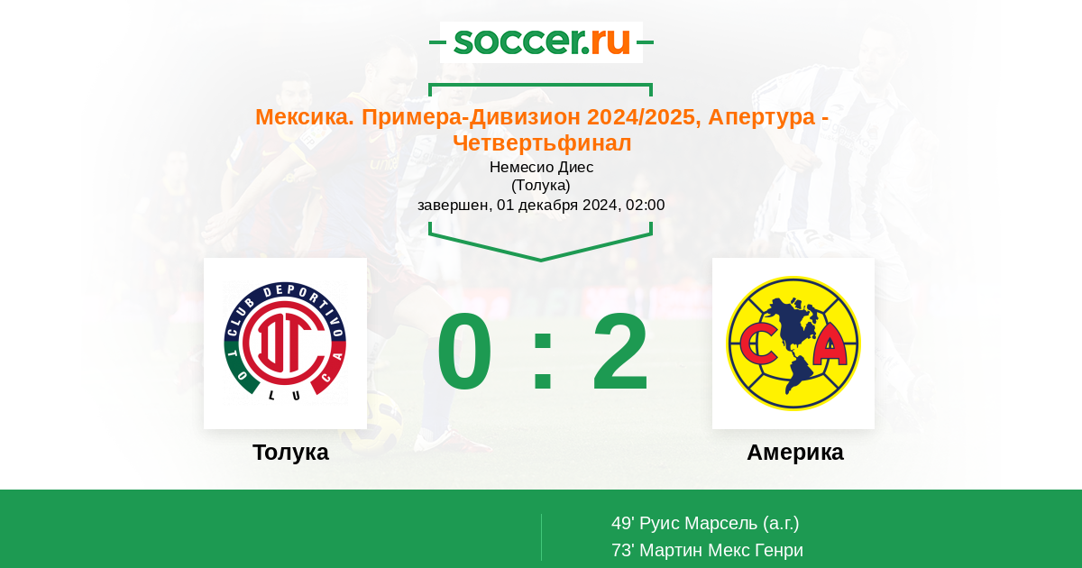 49' (0:1) Автогол Руис Марсель (14)