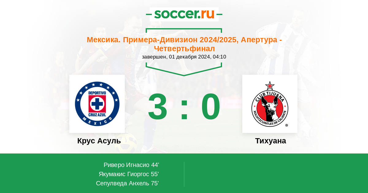 75' (3:0) Сепулведа Анхель (9) (Фернандес Габриэль (21))