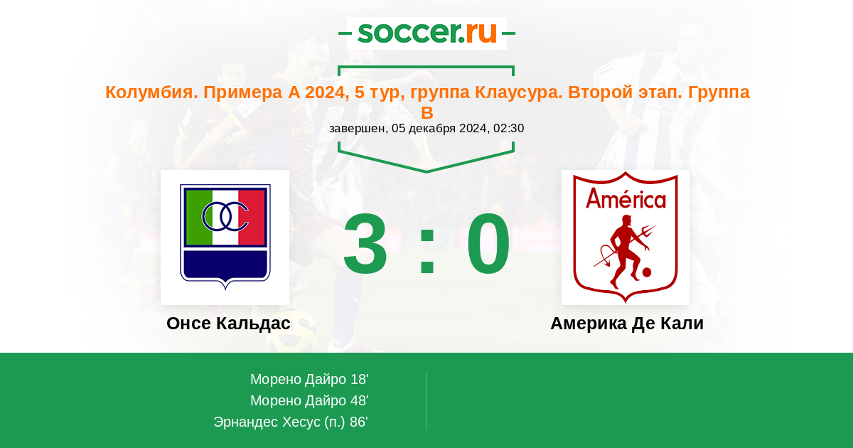 18' (1:0) Морено Дайро (17)