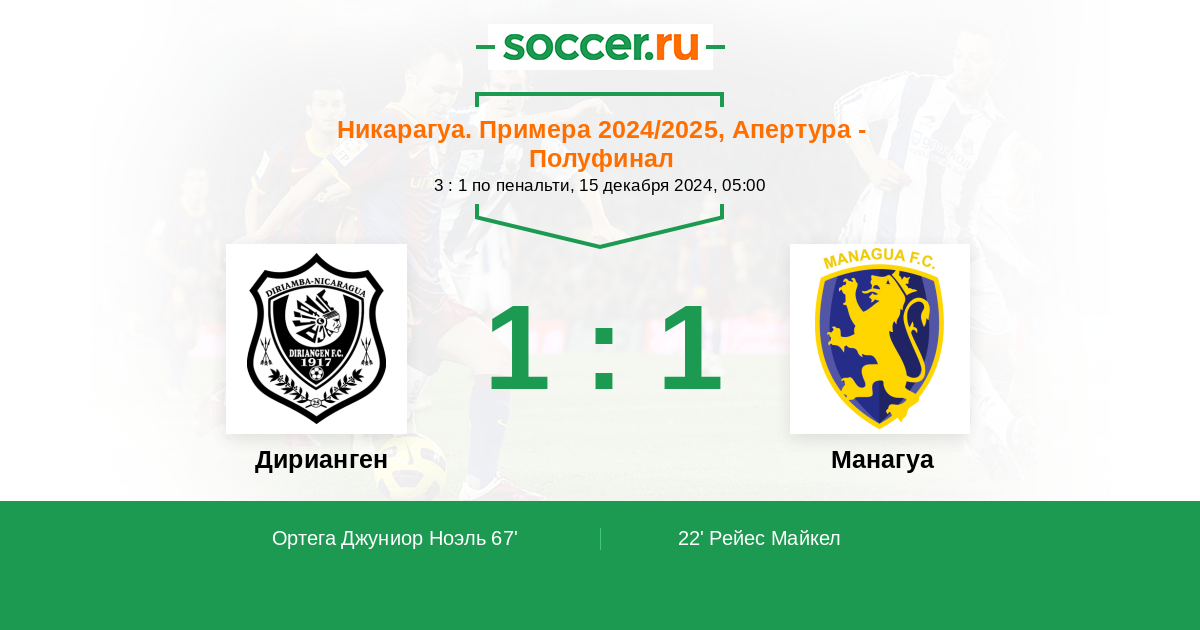67' (1:1) Ортега Джуниор Ноэль