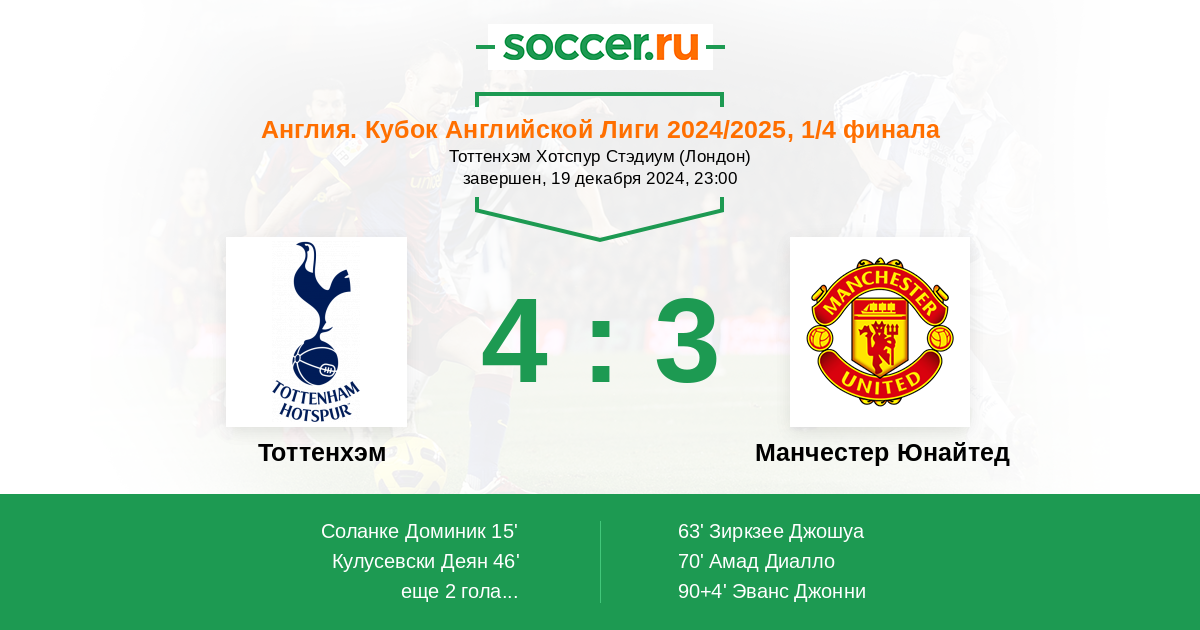 Тем более оба команды сейчас в такой ситуации, что даже скромный кубок английской лиги для них будет не лишним. Особенно это касается шпор, у которых отсутствие свежих трофеев уже превратилось в анекдот.