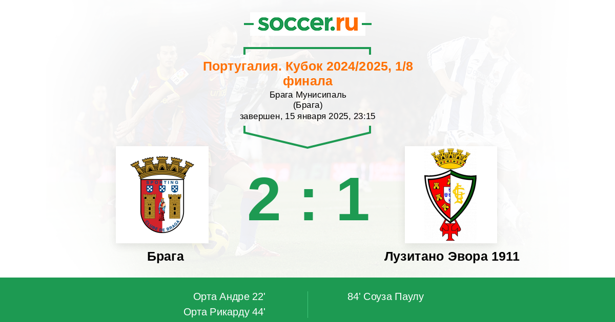 44' (2:0) Орта Рикарду (21) (Фран Наварро (39))