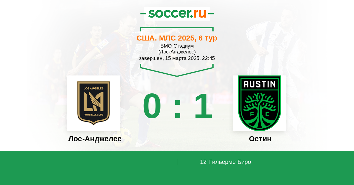 12' (0:1) Гильерме Биро (29) (Вольфф Оуэн (33))