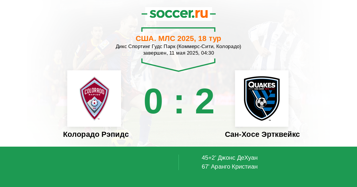 Колорадо Рэпидс - Сан-Хосе Эртквейкс