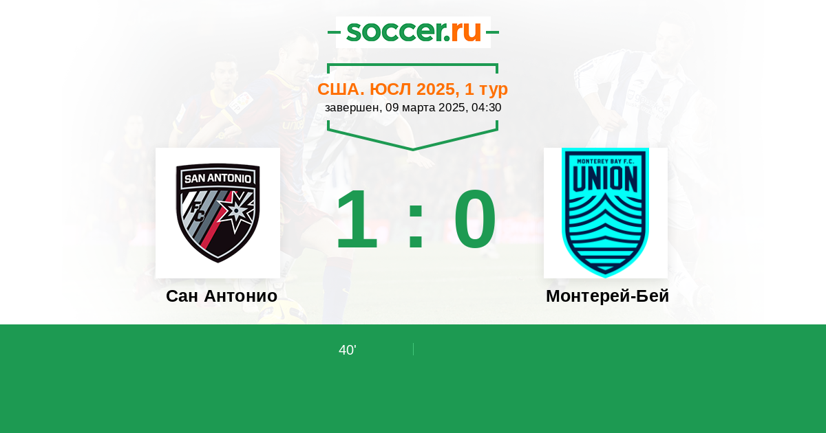 40' (1:0) D. Pacheco (Тайнтор Митчелл (3))