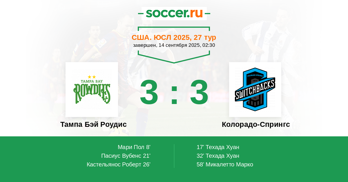17' (1:1) Техада Хуан (27) (Махони Мэттью (5))