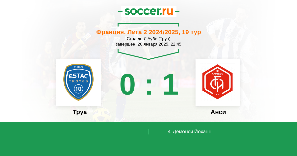 4' (0:1) Демонси Йоханн (24) (Н'Сакаля Фабрис (21))