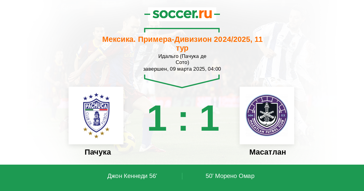 56' (1:1) Джон Кеннеди (10) (Лопес Эдуардо (19))