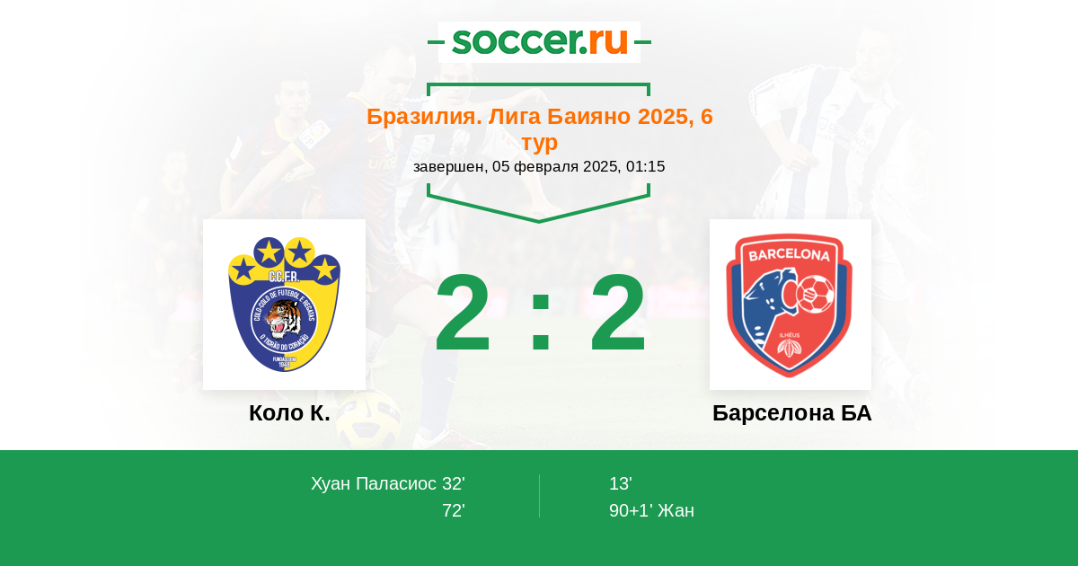 Запасные: Хуан Паласиос (с 8'), Пеллес Фелипе (с 23'), Даниэль Жунио (с 46'), Фабио (с 68'), Нето (с 68'), Дуду, Бруно Луис, Гуига, Гояно Матеус, Пабло Мальдини