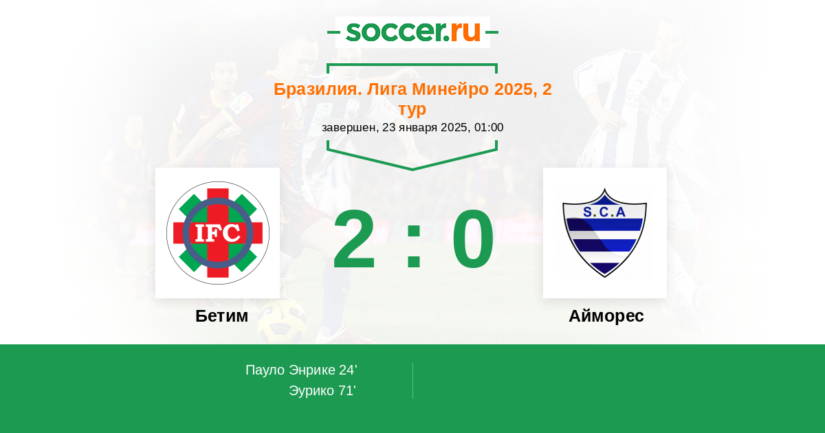 24' (1:0) Пауло Энрике (9) (Жоао Диого (11))