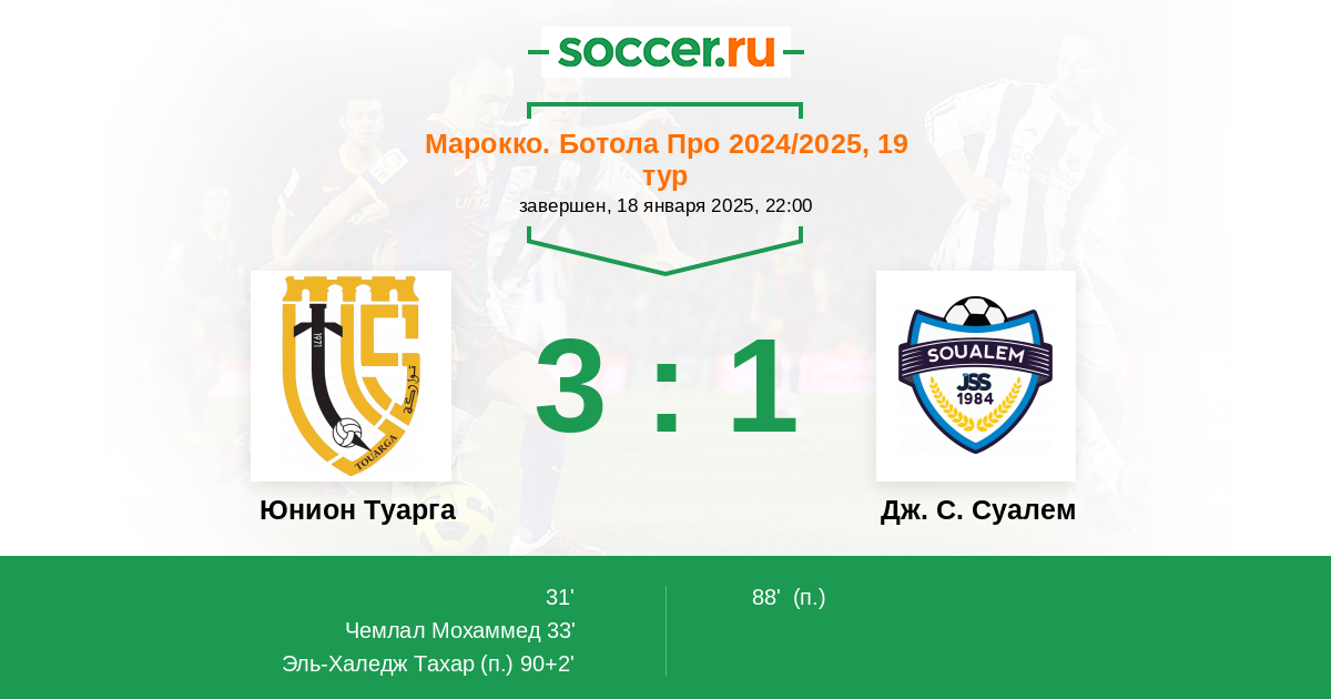 33' (2:0) Чемлал Мохаммед (10) (M. Dahak)