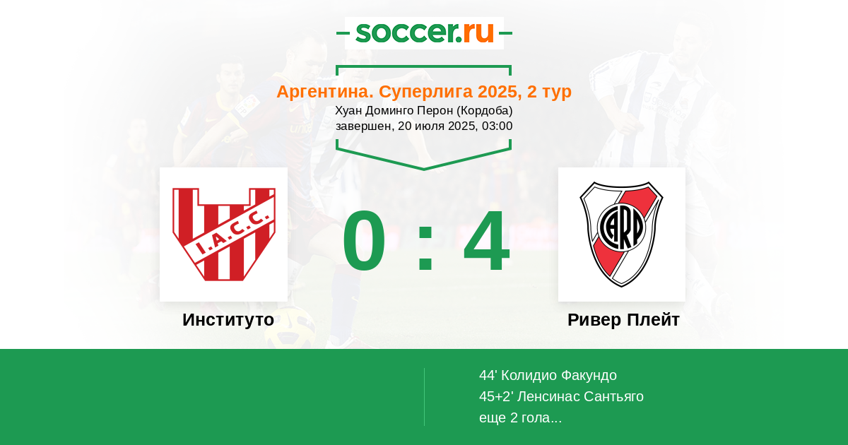 44' (0:1) Колидио Факундо (11) (Салас Максимилиано (7))