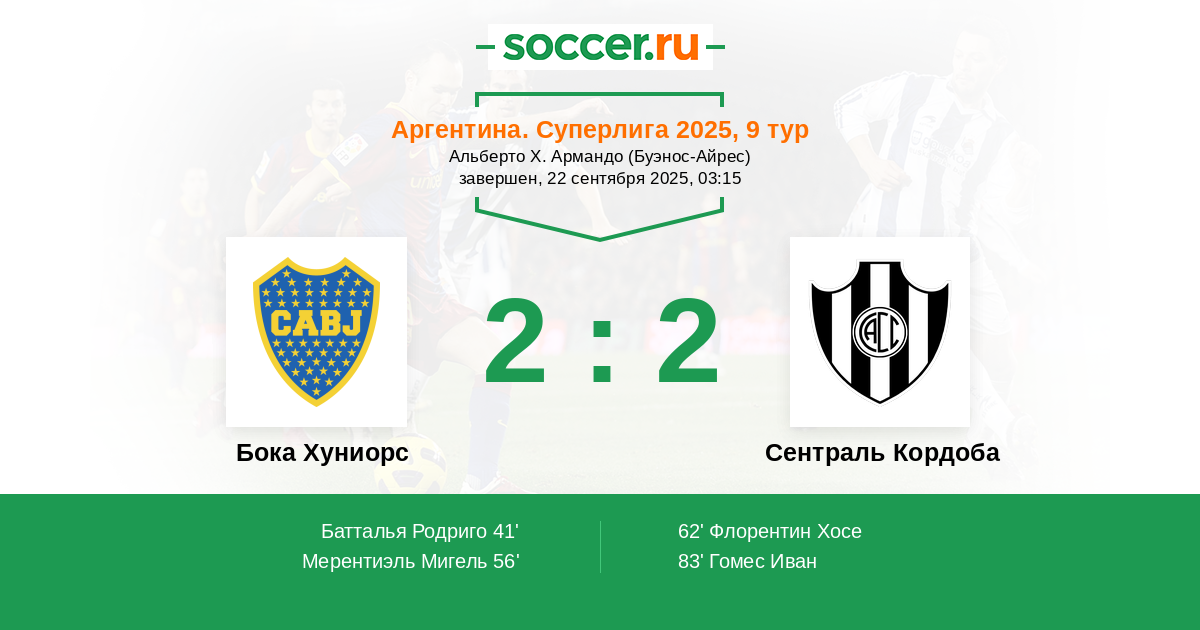 Запасные: 22 Сосая Хуан, 42 Пиньяни Хуан, 6 Мансиллья Факундо, 4 Пильюд Иван, 3 Марчи Леонардо, 15 Кристофоро Себастьян, 27 Хуарес Фернандо, 7 Баррера Диего (с 58'), 35 Альфонсо Франко (с 74'), 77 Бесоззи Лукас (с 58'), 10 Верон Гастон (с 58'), 9 Варальдо Лукас