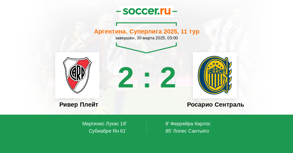18' (1:1) Мартинес Лукас (28) (Акунья Маркос (21))