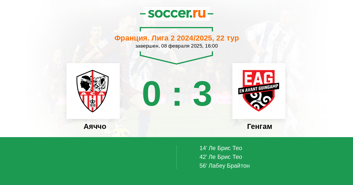 42' (0:2) Ле Брис Тео (28)