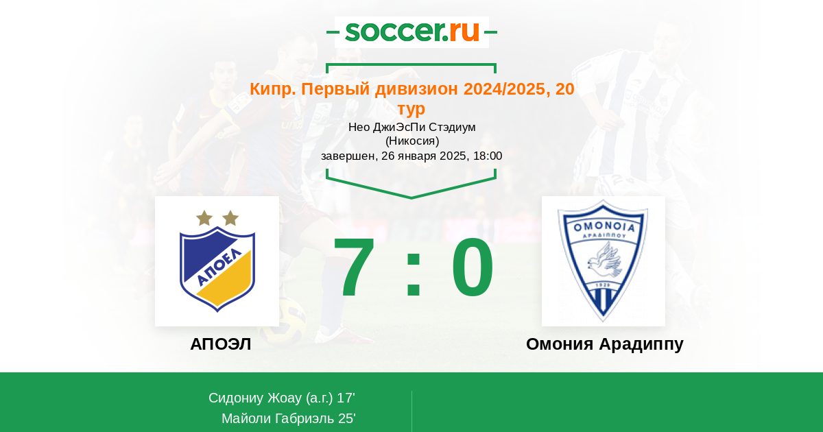 Запасные: 18 Сатсиас Гианнис (с 58'), 28 Галанопулос Константинос (с 58'), 79 Сотериу Пьерос (с 58'), 30 Корбу Мариуш (с 64'), 43 Кано Лаутаро (с 73'), 1 Перейра Габриэль, 3 Петрович Радосав, 6 Меер Витор, 7 Майер Макс, 12 Ба Алгассим, 22 Христодулу Андреас, 44 Сарфо Кингсли