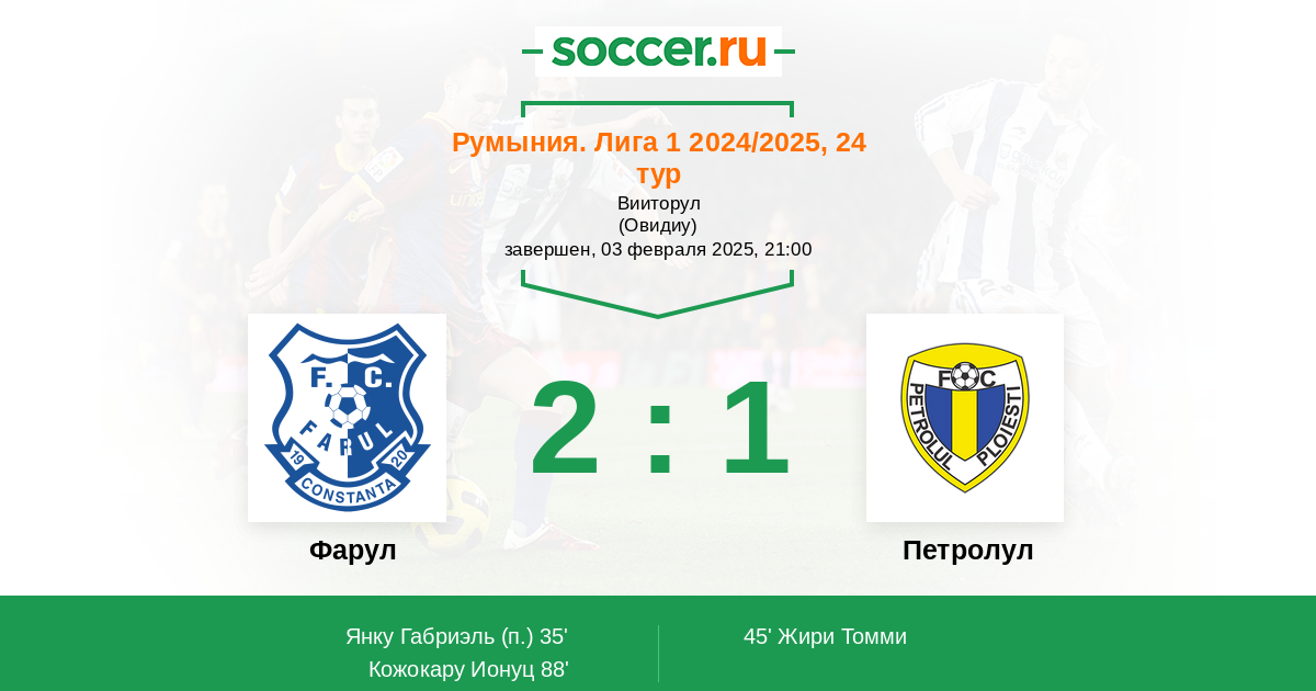 45' (1:1) Жири Томми (6) (Ханка Сергиу (20))