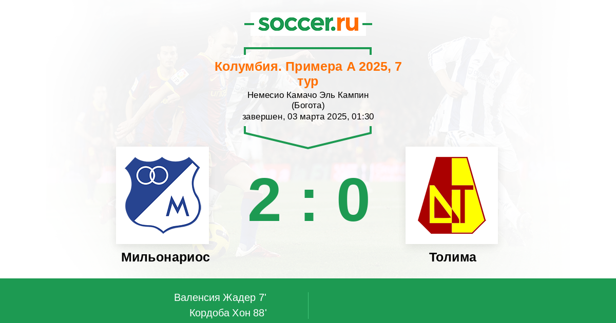 Запасные: 3 Кинуньес Хулиан (с 46'), 27 Рамирес Густаво (с 73'), 28 Миранда Луиз (с 86'), 1 Куэста Уилльям, 19 Москера Фабиан, 6 Трухильо Кристиан, 71 Арриета Кристиан