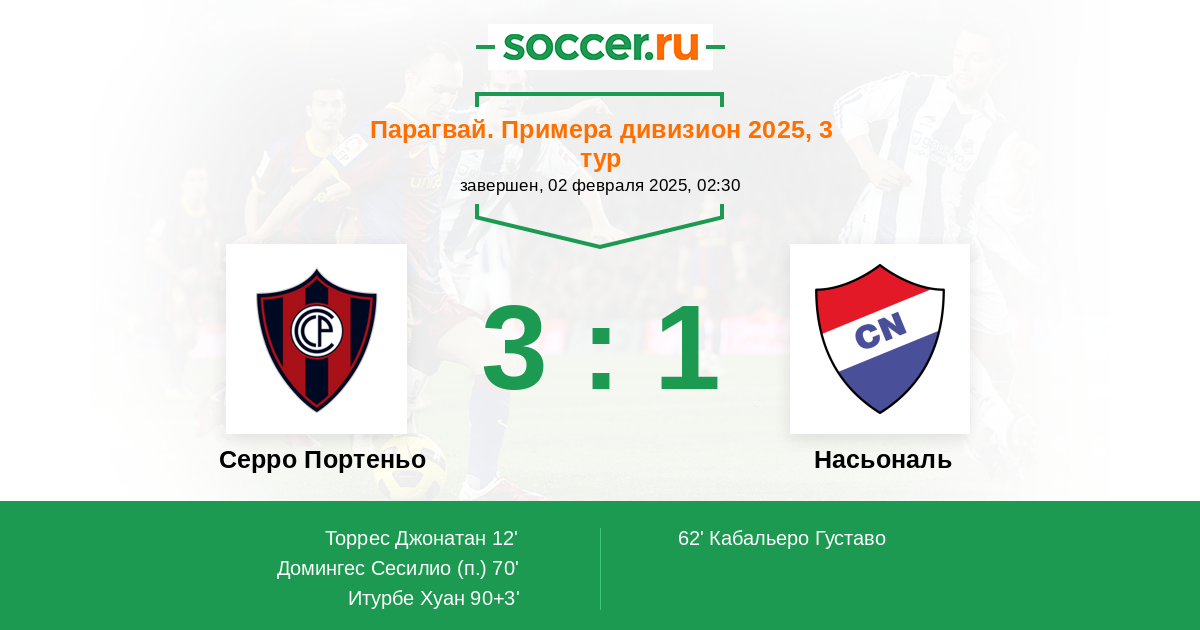 62' (1:1) Кабальеро Густаво (11)