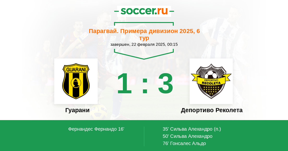16' (1:0) Фернандес Фернандо (40) (Torales Richard)