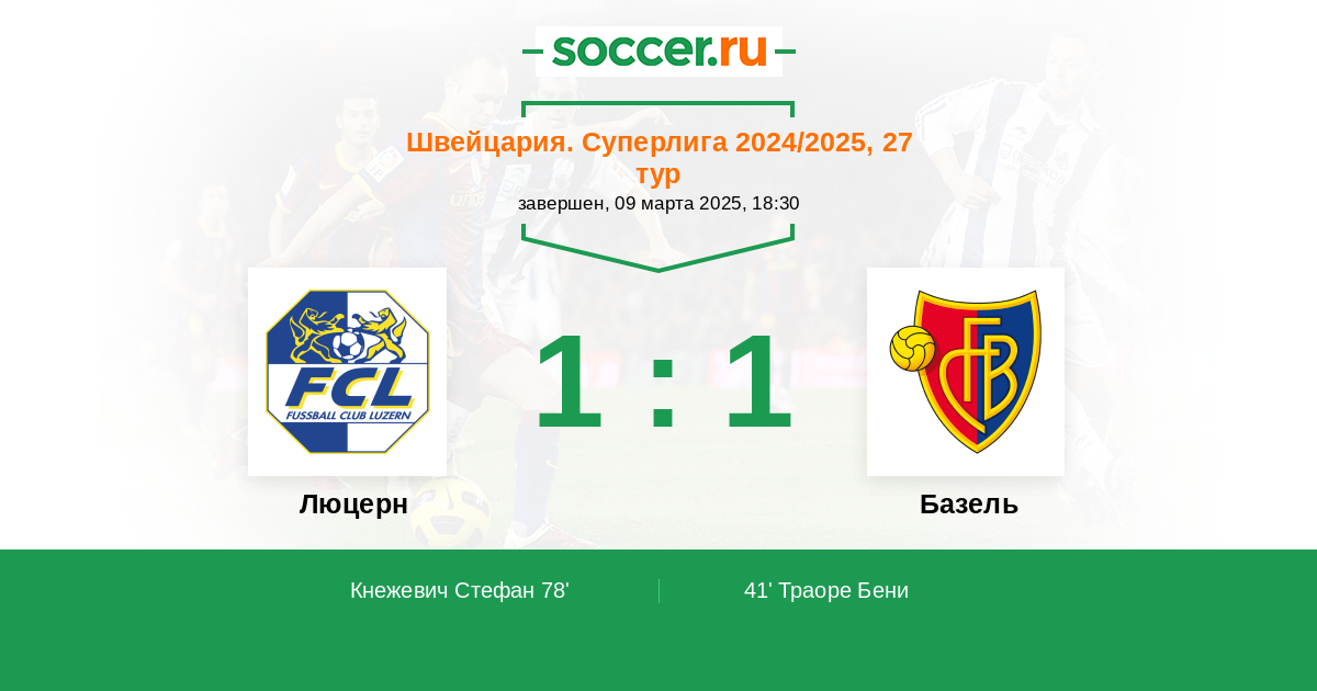 78' (1:1) Кнежевич Стефан (5) (Дорн Пиус (20))