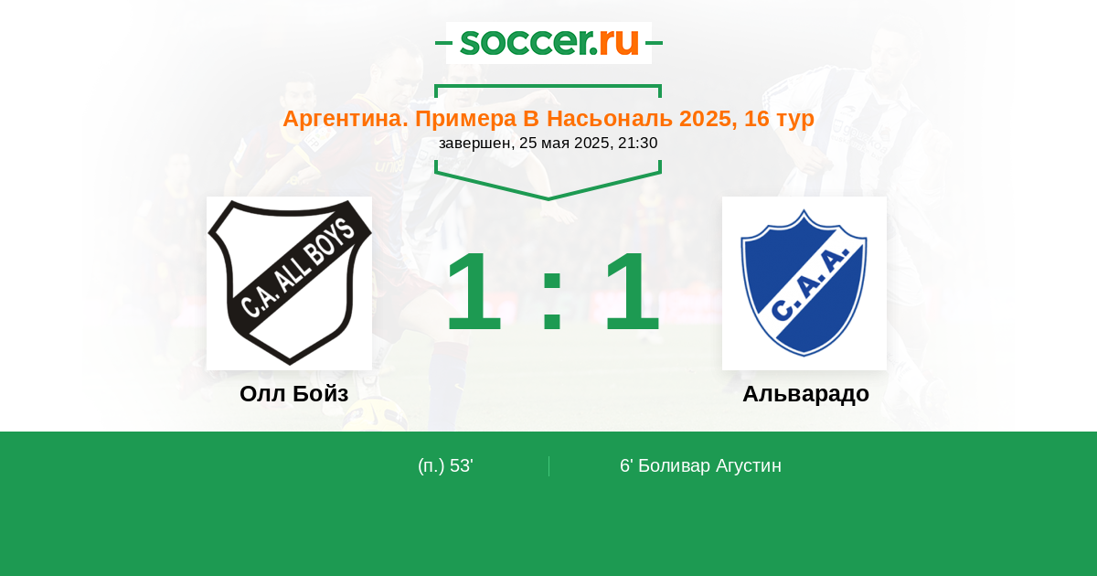 6' (0:1) Боливар Агустин (8)