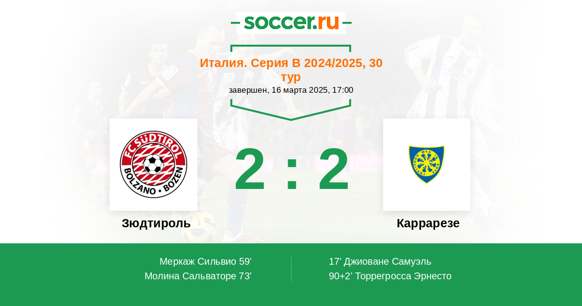 90+2' (2:2) Торрегросса Эрнесто (92) (Дзанон Симоне (72))