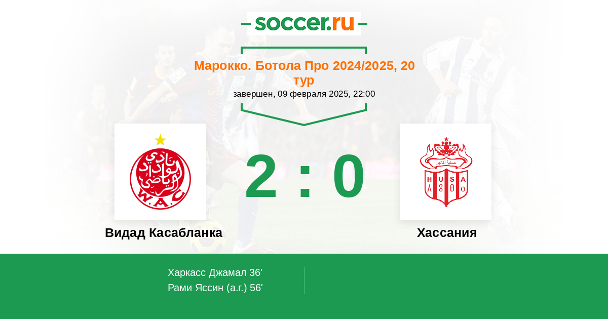 36' (1:0) Харкасс Джамал (16) (Мутарайи Исмаил (5))