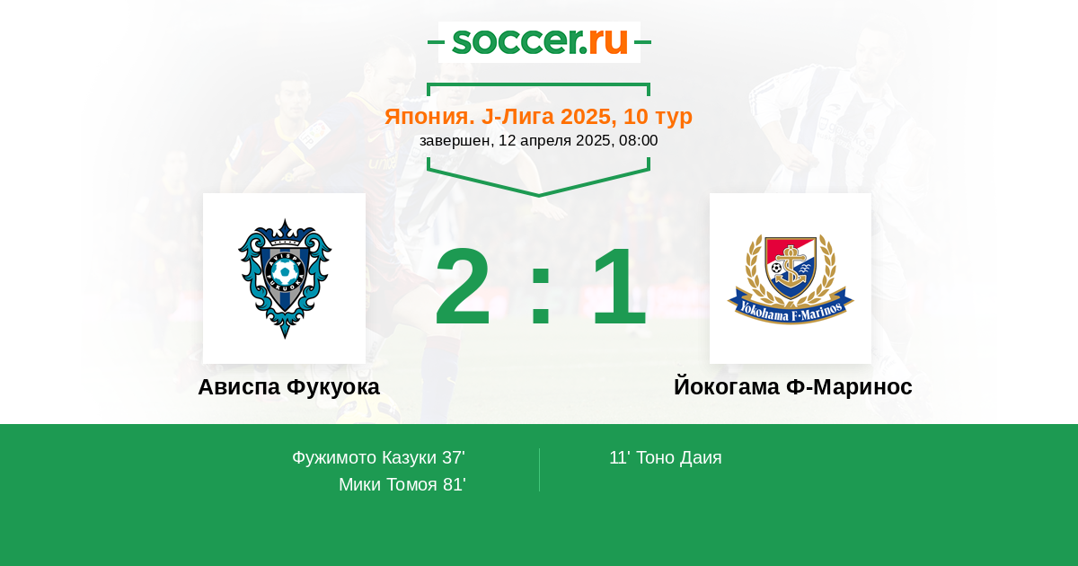 81' (2:1) Мики Томоя (11) (Маеджима Йота (29))