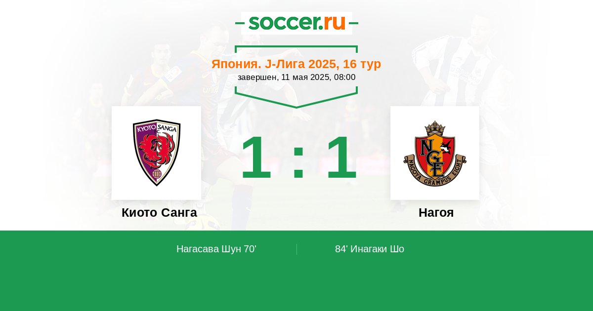 84' (1:1) Инагаки Шо (15)
