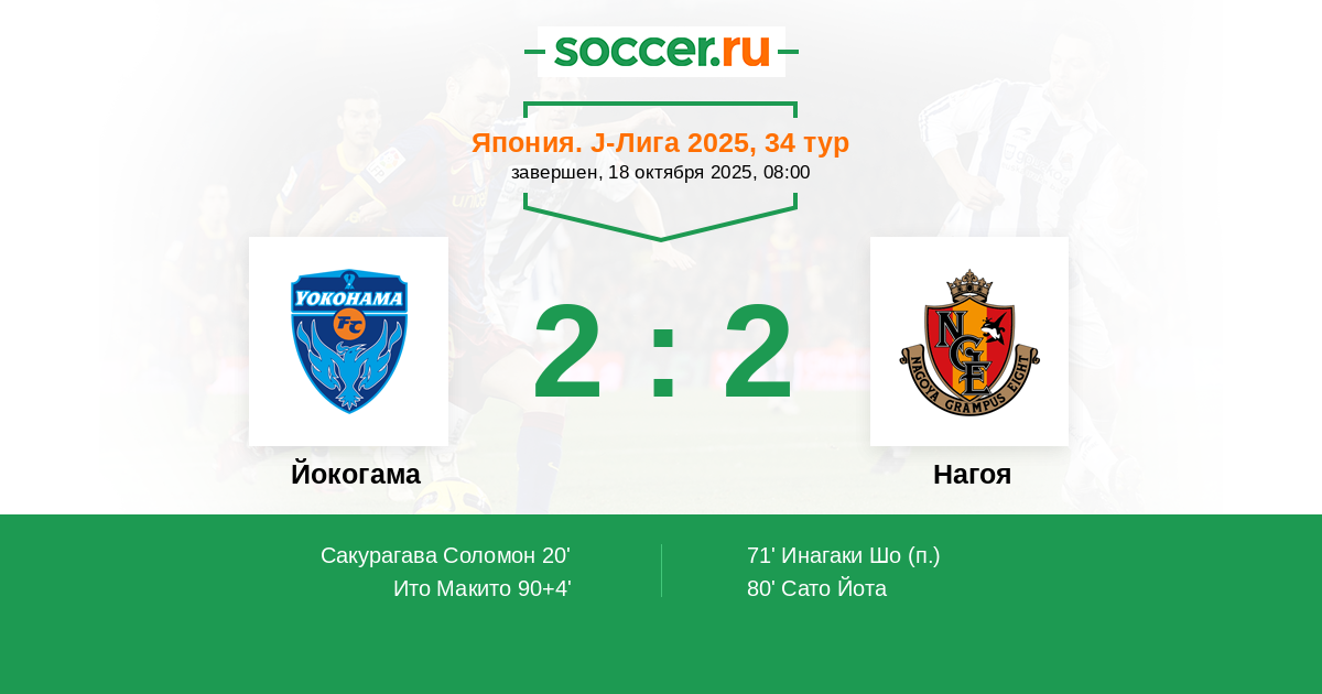 71' (1:1) Инагаки Шо (15)