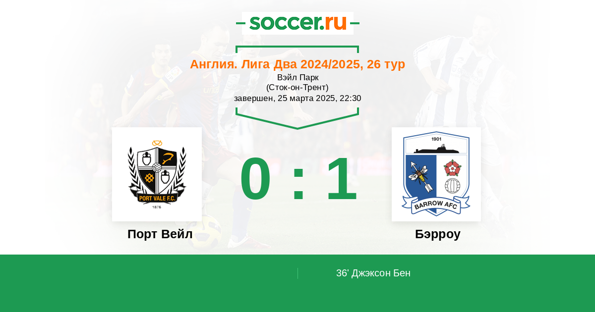 36' (0:1) Джэксон Бен (30)